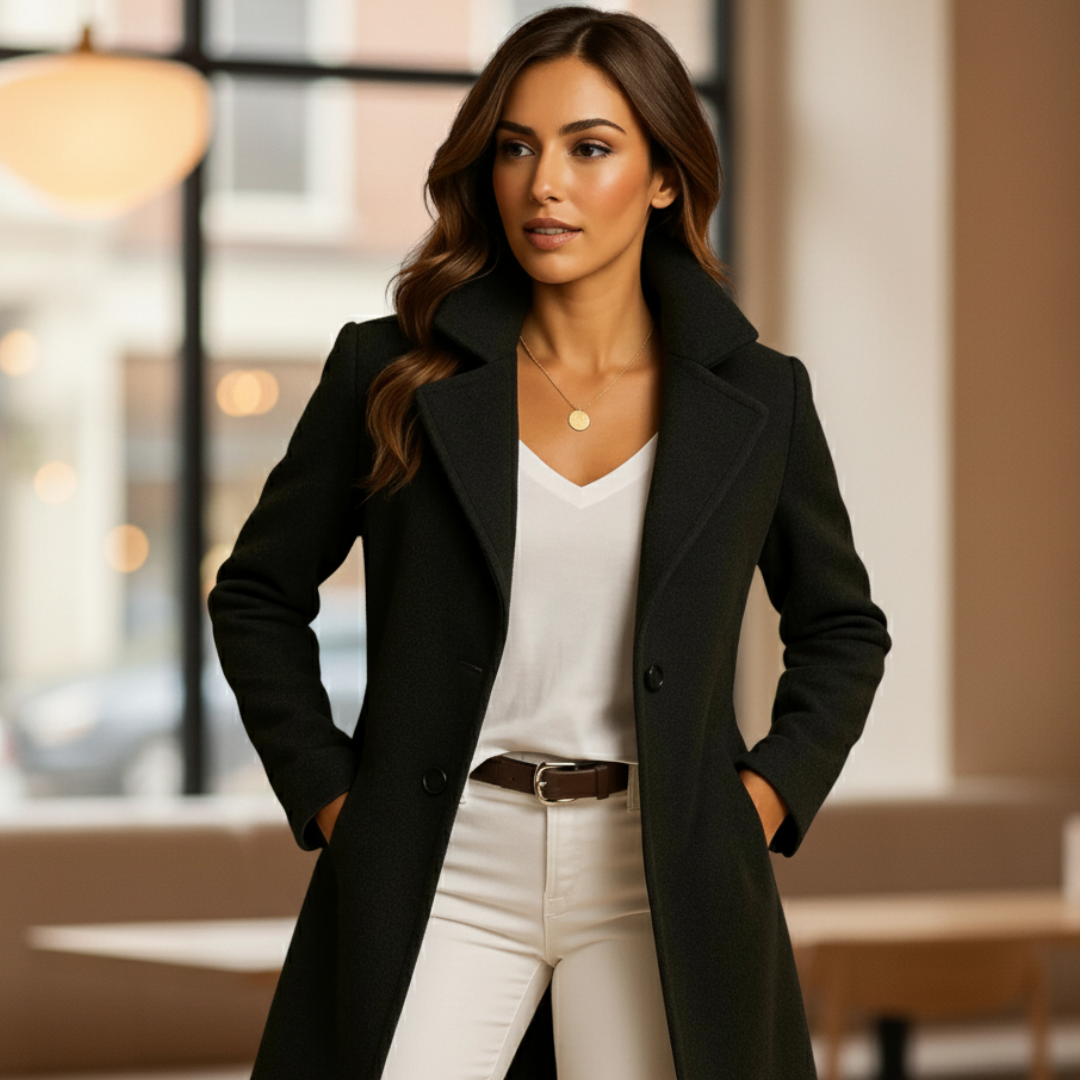 Træd ind i en verden af raffineret sofistikering med Gabriela - klassisk uldfrakke. Designet med en skræddersyet silhuet og håndværk af høj kvalitet, tilbyder denne frakke varme, komfort og en stil, der aldrig går af mode. Perfekt til arbejde, byvandringer eller særlige lejligheder, er det et essentielt stykke i enhver moderne kvindes garderobe. 👗